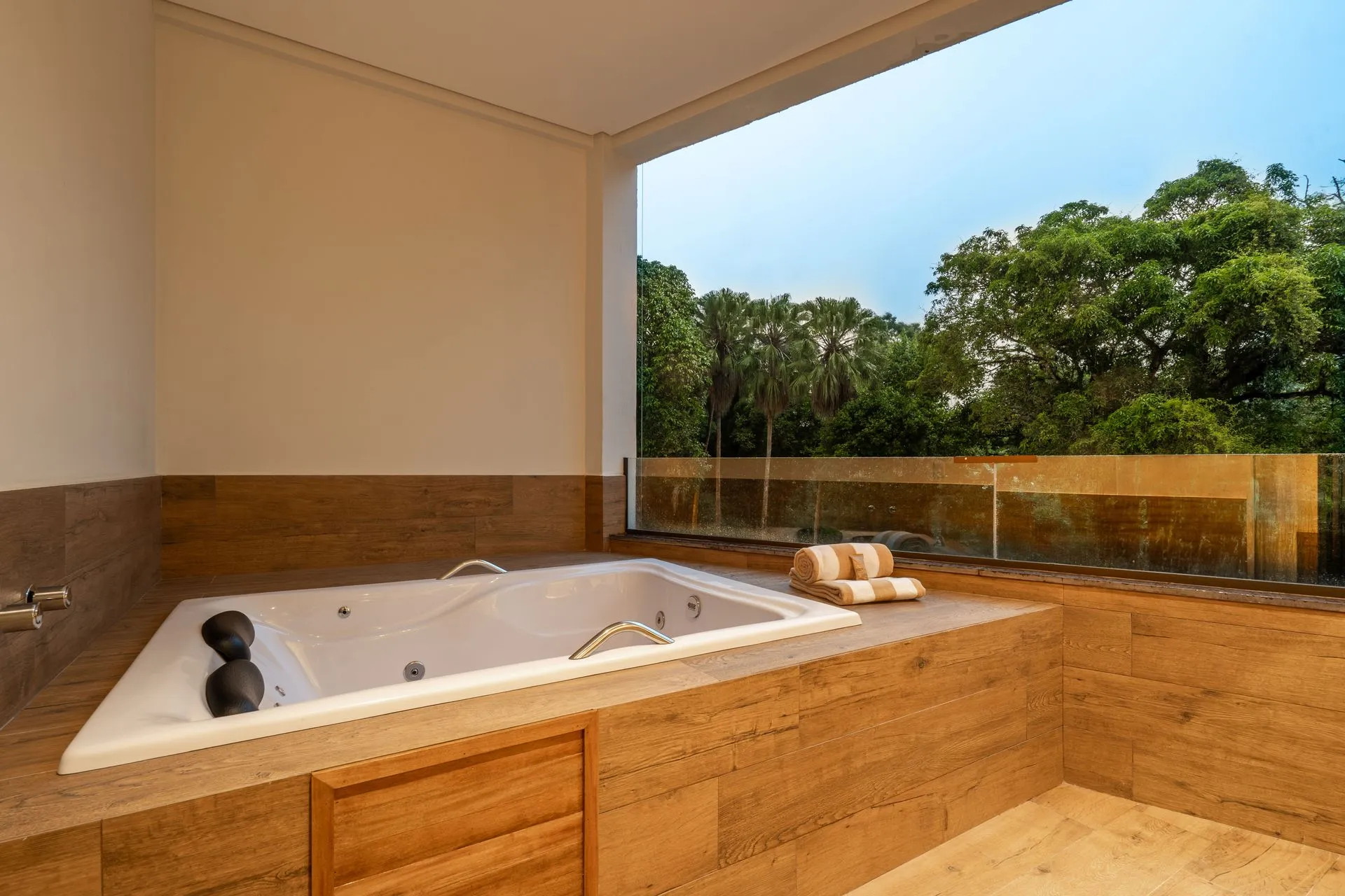 O Vert Hotel e Spa foi estrategicamente construído em um ecossistema repleto de vegetação nativa, rios e cachoeiras, garantindo que a beleza natural seja parte fundamental da experiência. A arquitetura do hotel foi pensada para se integrar harmoniosamente ao ambiente, com acabamentos requintados em madeira e pedras naturais.
